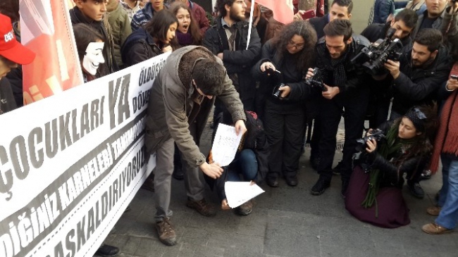 Daha sonra Yüksel Caddesi’ne yürüyen göstericiler Milli Eğitim Bakanlığı’na yürümek isteyince polis ekipleri izin vermedi. Eylemciler polis barikatı önünde basın açıklaması yaptı. Eğitim sisteminin eleştirildiği ve bugün kendilerine verilen karneleri tanımadıkları belirtilen açıklamanın ardından eylemciler karnelerini yakarak olaysız şekilde dağıldı.