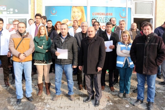 Ağrı Ağız ve Diş Sağlığı Merkezi önünde sendika adına açıklama yapan sendika temsilcisi Terhan Tarılığ, sağlık çalışanlarına yönelik şiddetin gün geçtikçe arttığını söyledi. Tarılığ, “Gerekli tedbirler alınmamakta. Sağlık çalışanları kaderlerine terk edilmektedir. Bu saldırılar için tedbir alınmazsa, sağlık personeli her an şiddetle karşı karşıya kalmaya devam etmekte ve bugün geçtikçe artmaktadır. Çarşamba günü Doğubayazıt ilçemizde Doç. Dr. Yaşar Eryılmaz Devlet Hastanesi’nde görevi başındaki arkadaşımız Diş Tabibi Cemal Yücebaş böyle bir saldırıya maruz kalmış ve yararlanmıştır. Kesici, delici alet ile gerçekleşen saldırı sonucu arkadaşımızın el parmaklarında kırık, yüzünde yaralanma ve kafatasında çatlak tespit edilmiştir. Şiddete maruz kalan arkadaşımız şu an görevini ifa edememekte ve hastanede yatmaktadır. Çok iyi biliyoruz ki bu saldırı ilk değildi son da olmayacak. Sağlık çalışanlarının çalışma ortamlarının düzeltilmesi ve güvenliklerinin sağlanması için Sağlık Sen olarak gereken bütün çalışmalar yapılmakta ve yapılmaya devam etmektedir. Bilinsin ki sağlık çalışanları ve sendika olarak şiddete karşı dimdik ayakta duracağız, saldırıya uğrayan arkadaşımızla ilgili tüm yasal sürecin takipçisi olacağız. Arkadaşımıza acil şifalar diler. Bir an önce yaptığı kutsal göreve geri dönmesi temenni ederiz” dedi.