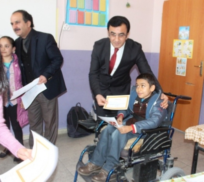 Türkiye Odalar ve Borsalar Birliği Ortaokulu’nda düzenlenen karne dağıtım törenine İpekyolu Kaymakamı Sabri Uzun, İpekyolu İlçe Milli Eğitim Müdürü Şükrullah Yavuzer, Şişli Öğretmenevi Müdürü Enver Mürre, Okul Müdürü Belkıs Turul, şube müdürleri ve öğretmenler katıldı. Okulun 5. sınıf öğrencisi olan ve bedensel engeli nedeniyle tekerlekli sandalye yardımıyla eğitim öğretimini sürdüren Alper Kaya da karnesi aldı. Sınıfın en başarılı öğrencilerden biri olan Alper Kaya, takdirnamesini ve karnesini İpekyolu İlçe Milli Eğitim Müdürü Şükrullah Yavuzer’in elinden alarak 15 günlük yarıyıl tatiline çıktı.