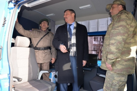 Kütahya Valisi Şerif Yılmaz, jandarmanın mobil karakol aracını inceledi.