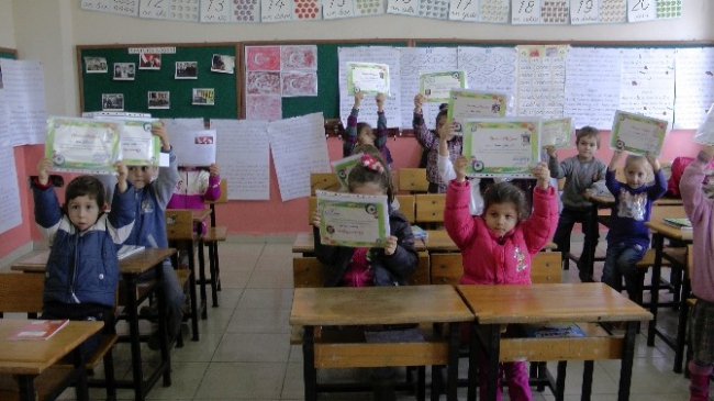 Türkali Köyün’de 2014-2015 yılının ilk yarı tatili bugün başlarken, öğrencilerde karnelerini aldılar. Öğrenci velileri de karne alacak çocukları için heyecanlandılar. Türkali İlköğretim okulunda düzenlenen bir programla karneler öğrencilere dağıtıldı. Başarılı öğrenciler çeşitli hediyelerle ödüllendirilirken, kitap okumada dereceye giren öğrencilere de öğretmenleri tarafından hediye takdim edildi. Okul Müdürü Bülent Aksoy öğrencilere hitaben yaptığı konuşmada; “2014-2015 yılı birinci dönem sonuna geldik. Tüm öğrencilerimize karnelerini dağıttık. Yaptığımız törende yıl boyunca başarılı olan öğrencilerimizi ödüllendirdik. Özellikle kitap okuma konusunda yaptığımız yarışma sonucunda en çok kitap okuyan öğrencilerimizi ödüllendirdik. Böylece kazasız belasız gerek taşımada gerek diğer hususlarda herhangi bir kaza olmadan ilk dönemi tamamladık. Ben bu açıdan çok mutlu olduğumu söylemek isterim. İnşallah 2.dönem daha başarılı bir dönem olması için elimizden geleni yapacağız” diye konuştu. Program sonunda istiklal Marşı öğrenciler tarafından okunarak 15 günlük tatil dönemi başladı.