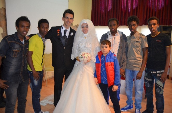 Kılıçaslan Liselerinin son sınıfında öğrenim gören Somalili ve Kongolu on üç öğrenci düğünde katılan misafirleri bir ev sahibi yakınlığıyla tek tek karşılarken, düğün organizasyonunu da gerçekleştirdiler. Kur’an-ı Kerim, ilahiler ve ezgiler okuyan öğrenciler, davetlilerden büyük ilgi görürken; damat Abdullah Gök’ün ve gelin Emine Karakuş’un öğrencilerin vefası karşısında zaman zaman duygulandıkları dikkatlerden kaçmadı.