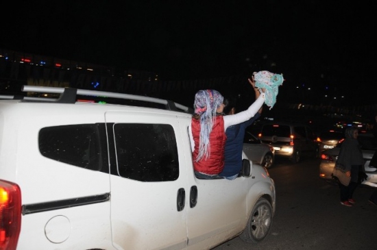 Turgut Özal Bulvarı üzerindeki Atatürk parkı önünde toplanan kalabalık, Kobani’nin Kürt güçlerinin eline geçmesini davul zurna eşliğinde halay çekerek kutladı. Havai fişeklerin patlatıldığı kutlamalarda polis geniş güvenlik önlemi aldı. Kutlama merkezinin Hür Dava Partisi’ne yakın olması nedeniyle polis parti önünde de güvenlik önlemi aldı.