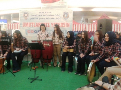 Malatya İl Emniyet Müdürlüğü Çocuk Şube tarafından ‘Çocuk ve Gençler Sosyal Koruma ve Destek Programı’ (ÇOGEP) kapsamında ‘Umutlarımız Yeşersin’ adlı proje hazırlandı. 16 kız öğrenci 2 ay boyunca polis memurları ve müzik öğretmenleri ile çalıştı. Yaptıkları enstrüman çalışmaları sonucunda AVM’de konser veren lise öğrencileri, çaldıkları müzik aletleri ve söyledikleri şarkılarla vatandaşlar tarafından büyük beğeni topladı. Yaklaşık 300 kişinin izlediği konserde lise 2. sınıf öğrencisi Kübra Mercan’ın sesi ise dinleyenleri büyüledi.