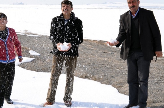 Havaların soğumasıyla birlikte tanecikleri birbirine yapışmayan kar, güneşin ışıklarıyla birlikte güzel görüntüler sunuyor. Arin Gölu kenarının birçok yerinde görülen kristal karı ellerine alan vatandaşlar, karı ovuşturduklarında birbirine yapışmadan toz şeklinde savrulmasını şaşkınlıkla izlediler.