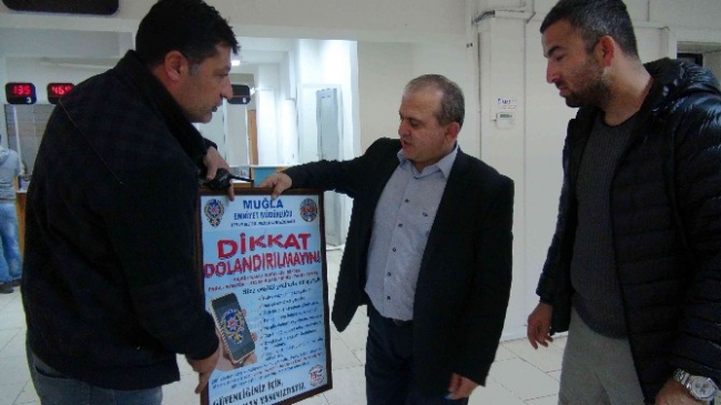 Son günlerde artan telefon dolandırıcılığına karşı Fethiye İlçe Emniyet Müdürlüğü tarafından vatandaşları uyarmak ve bilinçlendirmek amacı ile banka şubelerine ve halkın rahatlıkla daha fazla görebileceği noktalara uyarıcı afişler asılarak bilgilendirme çalışmalarına bir yenisi eklendi. Son bir haftadır vatandaşları telefonla arayıp kendilerini hakim, savcı veya polis olarak tanıtıp değişik senaryolarla kandırıp para veya kontör yükleme istemeleri ile ilgili çok sayıda şikayetin gelmesi üzerine Fethiye İlçe Emniyet Müdürlüğüne bağlı Asayiş ekipleri telefon dolandırıcılığına dikkat çekici afişler hazırlatarak ilçede görülebilen yerlere polisler tarafından bir bir asıldı. Yetkililer son bir haftadır Fethiye’de terör örgütü, bir operasyon yapıyoruz ya da polis, savcı, hakim adı kullanılarak dolandırıcılık yapıldığı şeklinde şikayetlerin arttığını, vatandaşların devamlı bilinçlendirilmesine rağmen yine de dolandırıldıklarını bu yüzden suçla mücadele için bu afişleri hazırlatıp Fethiye’de banka şubelerinden, ATM’lere, mağazalardan pazar yeri çevrelerine kadar hemen her yere asmak zorunda kaldıklarını söylediler. Hazırlatılan afişlerde telefon dolandırıcılarının ortak özellikleri de sıralanarak "Kendinden emin ve kararlı bir ses tonu ile konuşmaktadırlar. Anlattıkları senaryo ile korku ve panik hissi yaşatırlar, İnandırıcı ve ikna edici olmak için arka fon da telsiz sesi gibi kurgular kullanılabilmektedir. Güven kazanmak için kendilerini Vali, Hakim, Savcı ve Polis gibi tanıtırlar. Arada sordukları sorularla bilgi toplar, bu bilgilere uygun olarak senaryolarını genişletirler. Bazı durumlarda farklı bahanelerle saatlerce telefonun kapatılmasına izin vermezler. Böylece yakınlarla görüşme ve yardım almayı önlerler. Korkutarak veya insani duyguları suiistimal ederek yardım talep ederler. Her geçen gün yeni bahane ve senaryo üretip, farklı yalanlarla kandırmayı sürdürürler" deniliyor.