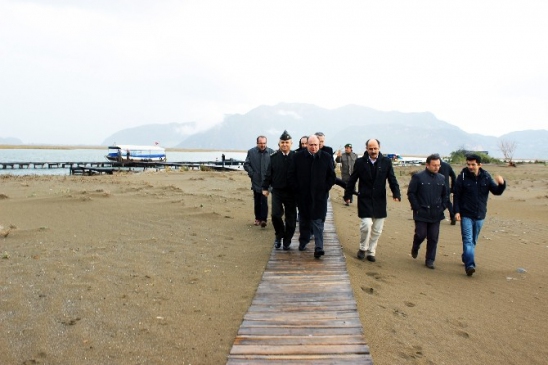 Vali Çiçek’in İztuzu sahilindeki incelemesine, Ortaca Kaymakamı Hüseyin Yılmaz, İl Jandarma Komutanı Kurmay Albay Halil Çelik, Turizm İl Müdürü Veli Çelik ve Tabiat Varlıklarını Koruma 2 No’lu Şube Müdürü Bekir Erdoğan eşlik etti. Bekir Erdoğan’dan alanla ilgili bilgi alan Çiçek, Dalyan’dan bindiği tekne ile önce Dalyan ağzı boğazını, ardından sahile geçti. Sahilde bulunan ahşap büfeleri ve Caretta Caretta deniz kaplumbağalarının yumurta bıraktığı alanı inceleyen Çiçek, daha sonra tekrar tekneyle Dalyan’a döndü.