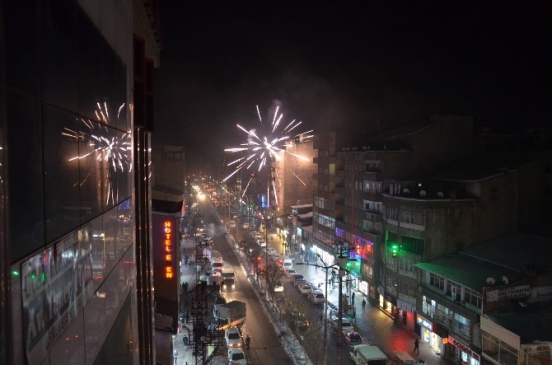 Hakkari’nin Yüksekova ilçesinde Kobani’nin Kürt güçlerin eline geçmesini havai fişeklerle kutlayan gruba polis müdahale etti.