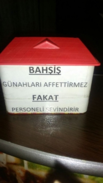 Restoranda çalışanlar tarafından hazırlanan bahşiş kutusunun üzerinde yazılan ‘Bahşiş günahları affettirmez fakat personeli sevindirir’ yazısı müşterilerin dikkatini çekiyor.