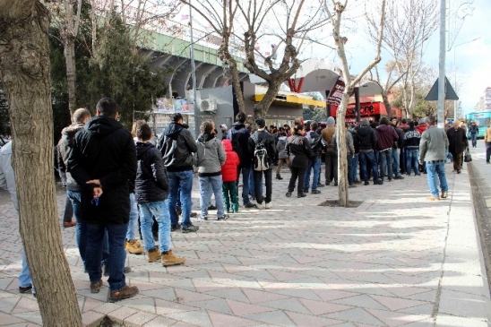 Süper Lig’de haftayı 3 puanla kapatan ve zirve yarışını sürdüren Galatasaray, Ziraat Türkiye Kupası G Grubu’ndaki 5’inci maçında bugün Eskişehirspor’a konuk olacak. Maç saatini sabırsızlıkla bekleyen taraftarlar ise, öğle saatlerinden itibaren stat önünde bilet almak uzun kuyruklar oluşturmaya başladı. Eskişehirspor taraftarları, bu akşamki maçtan umutlu olduklarını, takımlarının kazanması için 90 dakika desteklerinin süreceğini belirtti.