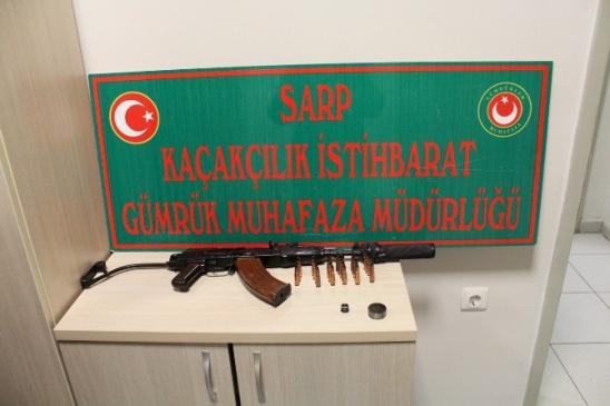 Sarp Sınır Kapısı’nda bir yolcu otobüsünde yapılan aramalarda susturuculu bir kalaşnikof marka silah ile çok sayıda mermi ele geçirildi.