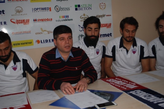 Başkan Murat Narçın’ın basın toplantısında Antrenör Suat Akdereli, Yönetim Kurulu Üyeleri Selahattin Çolakoğlu, Muzaffer Kurt ve yeni transferler Salih İzmir, Kadir Mert Örentepe, Behmen Behlül Seymen, Kazım Gürsel Güraslan ve Volkan Erdoğan’da hazır bulundu.