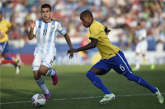 20 Yaş Altı Güney Amerika Futbol Şampiyonası Final Grubu maçında Arjantin ile Brezilya karşılaştı. Centenario Stadı'nda oynanan karşılaşmada Brezilyalı oyuncu Caju (sağda), Arjantinli rakibi Angel Correa (solda) ile mücadele etti.Muhabir: Nicolas Rodriguez