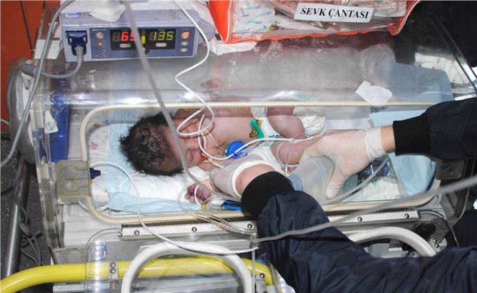 Hakkari'de yeni doğan ve solunum sıkıntısı yaşayan bebek, askeri helikopterle Van'a ulaştırıldı.