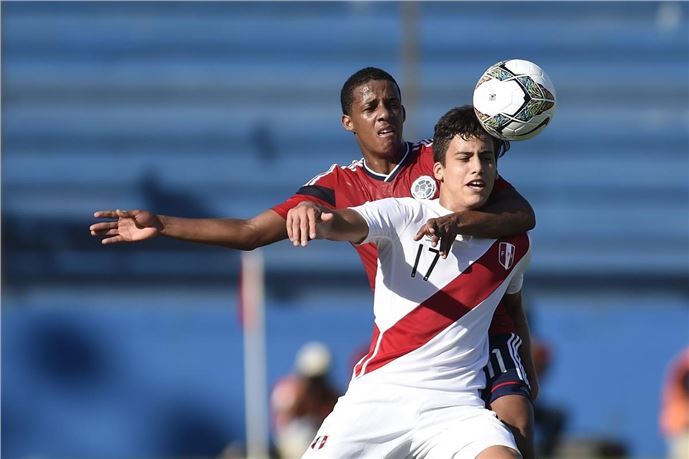 20 Yaş Altı Güney Amerika Futbol Şampiyonası Final Grubu maçında Kolombiya ile Peru karşılaştı. Centenario Stadı'nda oynanan karşılaşmada Perulu oyuncu Luiz Da Silva (önde 17), Kolombiyalı rakibi Jeison Lucumi (arkada) ile mücadele etti.Muhabir: Nicolas Rodriguez