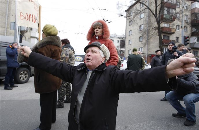 Ukrayna'nın doğusundaki ayrılıkçılara karşı operasyonlara gönüllü olarak katılanlardan oluşan "Aydar Taburu" askerleri, bugün de Savunma Bakanlığı binası önüne toplanarak, gün boyunca eylemlerini sürdürdü. Ellerinde Ukrayna bayraklarıyla eylem yapan gönüllü askerler, bakanlığın bulunduğu caddeyi, yanlarında getirdikleri otomobil lastikleriyle bir kaç kez kapatarak trafiği engelledi. Gönüllü askerlere, caddeden geçen vatandaşlar da destek verdi. Bakanlığın kapısı önüne topladıkları lastikleri ateşe vererek taburun lağvedilmesini protesto eden gönüllü askerler, sık sık "Kahramanlar ölmez", "Bakan buraya" şeklinde slogan atarak Savunma Bakanı Stepan Poltorak ile görüşme talep etti.Muhabir: Vladimir Shtanko