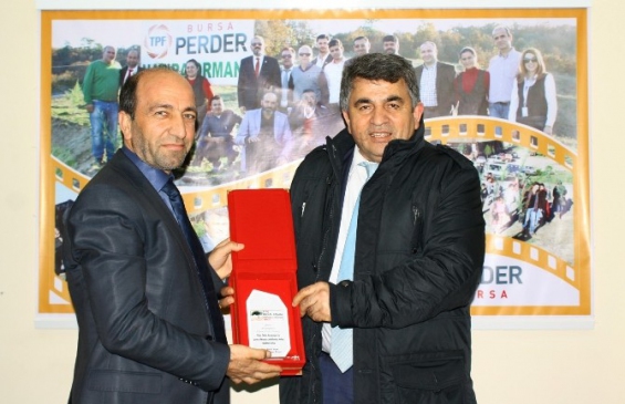 Konuşmaların sonunda Büyükorhan Belediye Başkanı Hasan Taş, Bursa PERDER Hatıra Ormanı projesini Büyükorhan’da gerçekleştirmelerinden ötürü Başkan Haşim Kılıç’a plaket ve çini işlemeli fincan takımı takdim etti.