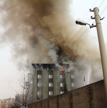 Iğdır Polisevi’nin restoran olarak kullanılan çatı katında çıkan yangın korkuya neden oldu.
