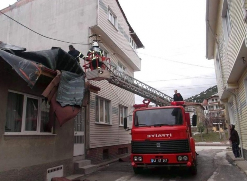 Olay yerine gelen İtfaiye ekipleri, fırtınadan dolayı tehlike arzeden çatıya, müdahale ederek, gerekli çalışmaları yapıp, olası bir kazaya karşı önlem aldı.