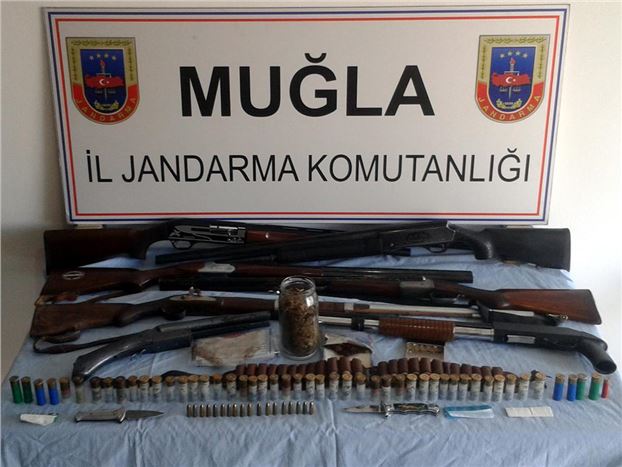 Ula ve Marmaris ilçelerinde düzenlenen operasyonda 3 kilo 397 gram esrar, 9 ruhsatsız av tüfeği ve çok sayıda fişek ele geçirildi.Muhabir: Muğla Jandarma Komutanlığı