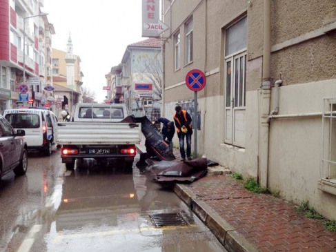 Mudanya Devlet Hastanesinin İnönü Bulvarı’na bakan cephesinde çatıdan kopan izolasyon parçaları yola düştü. Yoldan o anda kimsenin geçmemesi olası bir faciayı önledi. Mudanya Belediyesi Arama Kurtarma Ekibi tarafından kullanılmayan binanın etrafına güvenlik şeridi çekildi.
