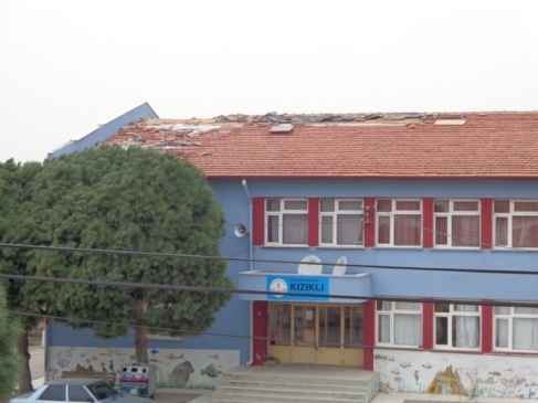 Burhaniye’nin Börezli Mahallesi’nde İbrahim Şendil’in (50) ölümüne sebep olan ve çok sayıdaki ağıl ve ahırın çatısını uçuran fırtına, Kızıklı Ortaokulu’na da zarar verdi. Çatıdaki kiremitler çevreye dağılırken, olayın gece olmasının faciayı önlediği kaydedildi. Okulun çatısının tadilatına hemen başlanacağını bildiren İlçe Milli Eğitim Müdür Sabri Pekşen, çatının tatil bitmeden onarılacağını söyledi.