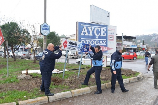 Çiğli Belediyesi Zabıta Müdürlüğü ekipleri tarafından yürütülen çalışmayla kentin çeşitli noktalarına yerleştirilmiş, yönetmeliğine uymayan ilan, reklam ve tabelalar toplatıldı.