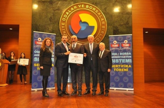 GTSO yetkilileri, Türkiye Odalar ve Borsalar Birliği’nde yapılan törende yeni akreditasyon sertifikasını aldı. Sertifika törenine Yönetim Kurulu Başkan Vekili Mehmet Yıldırım, Genel Sekreter Agah Arda ve akreditasyon sorumlusu Gamze Özeldiz katıldı. Törende konuşan TOBB Başkanı M. Rifat Hisarcıklıoğlu, akredite olarak ‘5 yıldızlı’ unvanı alan oda borsa sayısının 191’e ulaştığını, 41 oda ve borsanın da yolda olduğunu açıkladı