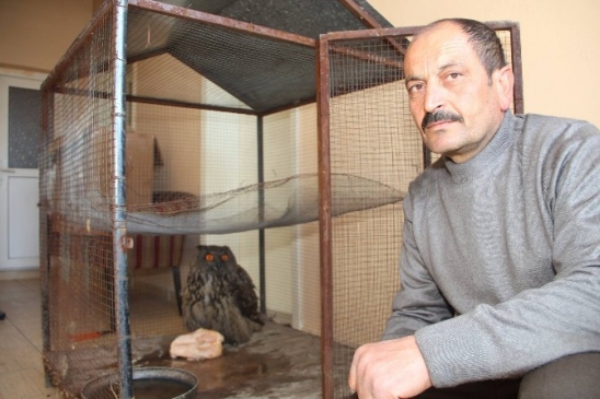Daireden dışarı çıkmak için kuşun tavanları tırmaladığını aktaran Orman Muhafaza Memuru Doğal Koruma Milli Parklar’da görevli Turgut Atmaca ise, “Akşam saat 17.00 sularında bir ihbar geldi. İhbara göre bir eve baykuş girdiği söylendi. Bunun üzerine olay yerine gittiğimde baykuş değil de puhu kuşu olduğunu gördüm. Karton kutu ile getirdik, demir kafese koyduk. Et verdik, yemedi. Daha sonra tavuk verdik, onu yedi. Şimdi Erzurum’dan gelecek veteriner arkadaşın yapacağı kontrolden sonra doğal yaşamına bırakacağız” dedi.