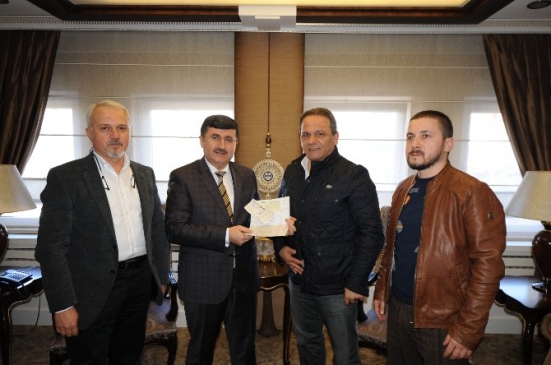 Görüşmede İşadamı Hasan Kadayıf, yardım kampanyasında toplanan yardım çeklerini Vali Öz’e teslim etti.