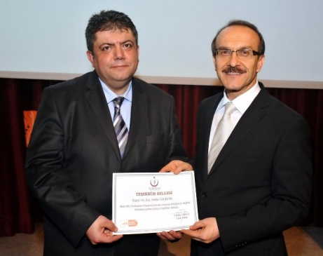 Vali Seddar Yavuz’un konuşmasının ardından Uşak Devlet Hastanesinde görevli Uzman Eczacı Hakkı Özçeltik ve Yıldırım Beyazıt Üniversitesi Öğretim Üyesi Yrd. Doç. Dr. Halil Kara tarafından Akılcı İlaç Kullanımı konusunda sunum yapıldı. Sunum sonunda Vali Seddar Yavuz konuşmacılara sertifikalarını takdim etti.
