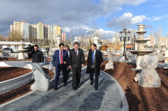 Başkanlık makamında Kardeş Kent Protokolü imzalanmasının ardından Başkan Gökçek ile birlikte 1 milyon 200 bin metrekarelik alanıyla Avrupa’nın en büyük Temapark’ı olacak olan ANKAPARK’ı gezen Slovenya’nın başkenti Lübliyana’dan gelen yetkililer, Büyükşehir Belediyesi tarafından yapılan çalışmalara hayran kaldıklarını dile getirdi. Geziye ANKAPARK Koordinasyon Merkezi’nde yer alan kent mobilyaları, çocuk oyun grupları ve figürlerinin sergilendiği alandan başlayan Başkan Gökçek, projenin Ankara’da turizmi geliştirecek en önemli ayaklarından biri olduğunu ifade etti.