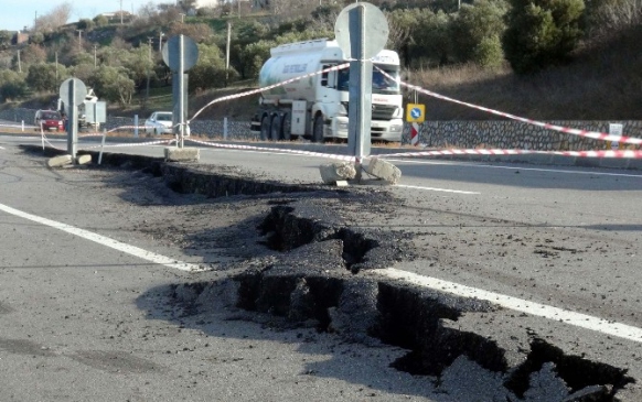 Çanakkale-İzmir karayolunun 17 kilometresinde geçtiğimiz gün oluşan yaklaşık 30 metre uzunluğundaki çatlak, önlem alınmayınca büyüdü. Yolun bir şeridinden 50 metrelik bölüm, yol seviyesinden yaklaşık 50 santimetre aşağıya doğru çöktü. Yol trafiğe kapatıldı.