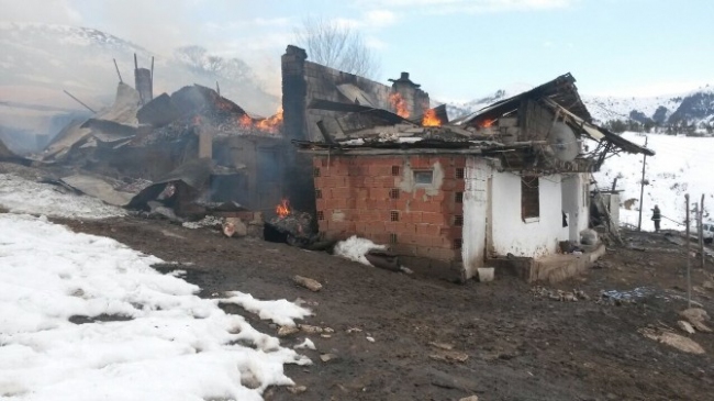 Gümüşhane’nin merkeze bağlı Gökçepınar köyünde dün akşam çıkan yangında bir ev, bir samanlık ve bir ahır küle döndü. Yangında 10 küçükbaş hayvan da telef oldu.