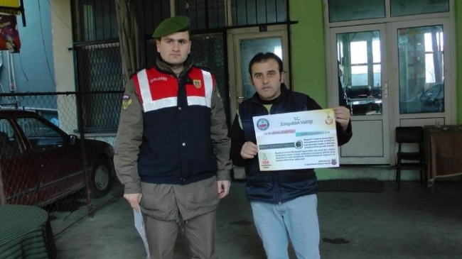 Zonguldak Valiliği, İl Jandarma Komutanlığı tarafından dolandırıcılık olaylarına karşı “Aldanmayın”, “Komşu Güvenliği” ve “Yerinde Kullan, Örnek Ol” projeleri hayata geçirildi. İl Jandarma Komutanlığı son zamanlarda artan dolandırıcılık olaylarını kamuoyuna yansıtmak amacıyla yapılan projeyi kamuoyuna tanıtmaya devam ediyor. Proje kapsamında hazırlanan broşürler de vatandaşlara dağıtılıyor. Bildirilerde ise “Alo! Ben Savcı Kemal, telefon hattınız kopyalanmış. Suç örgütlerince kullanılıyor. Kontör/Para gönderin sizi kurtaralım”, “Tebrikler. Ödül Kazandınız. Ödülü alabilmeniz için vereceğiniz hesaba para yatırmanız gerekli.”, “Hesaplarınız terör örgütünün eline geçti. Hesaplarınızdaki tüm paraların seri numarasını karşılaştırmak için belirtilen hesaba para yatırmanız veya belirtilen noktaya para bırakmanız gerekiyor” gibi ifadelere karşı “Hiçbir kamu görevlisi sizi arayarak kontör veya para talep etmez” şeklinde uyarılar yer alıyor. Vatandaşlar jandarma ekiplerinin ellerinden aldıkları broşürleri dikkatle gözlemleyerek yapılan bu uygulamanın devamını gelmesini istediler.