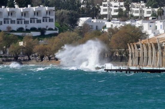 Bodrum’da Perşembe akşam saatlerinde başlayan ve gün boyu devam eden fırtına hayatı olumsuz etkiliyor.