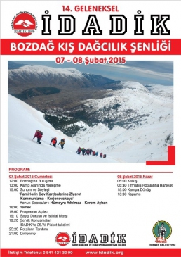 İzmir Dağcılık ve Doğa Sporları İhtisas Kulübü, 2002 yılından bu yana Ödemiş’in Bozdağ beldesinde düzenlediği Geleneksel Bozdağ İDADİK Kış Dağcılık Şenliği’nin 14.’sünü hafta sonu gerçekleştirilecek.