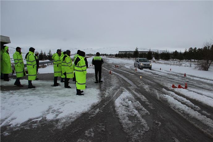 Emniyet Genel Müdürlüğü İleri Sürüş Teknikleri Eğitimi Merkezi, kaygan ve buzlu zeminde, sürücülerin nasıl davranacağı ve aracı nasıl kontrol edeceğini uygulamalı olarak anlattı.Muhabir: Fatih Çakmak