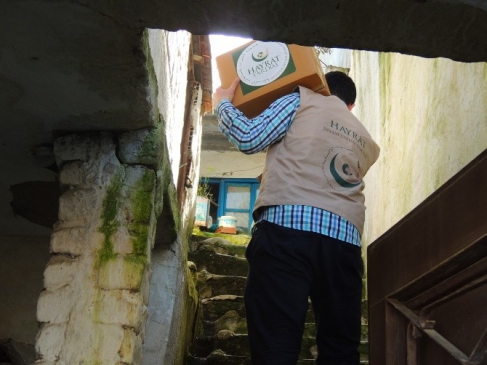 Manisa’da Hayrat İnsani Yardım Derneği ihtiyaç sahibi insanları tespit ederek içerisinde şeker, pirinç, un, kuru bakliyat, çay ve yağ gibi günlük yiyecek ihtiyaçlarının bulunduğu yardım kolilerini dağıttı.
