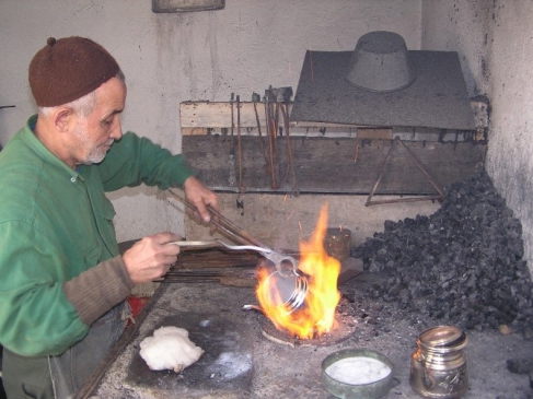 Kabu, bakır kapları önce tuz ruhuyla ardından da kumla temizlediğini, ardından nişadır ve eritilmiş kalayla birlikte odun ateşinde kalayladığını anlattı.