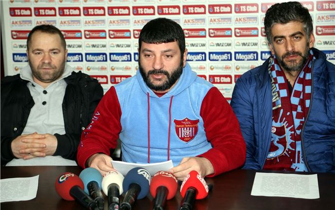 Trabzonspor Taraftarlar Birliği Başkanı Adem Söğüt (ortada), Türkiye Futbol Federasyonu (TFF) ve Profesyonel Futbol Disiplin Kurulu (PFDK) kararlarına tepki göstermek için Trabzonspor taraftar dernekleri yöneticileri ile Trabzon Gazeteciler Cemiyeti'nde basın toplantısı düzenledi.Muhabir: Tuncay Bekar