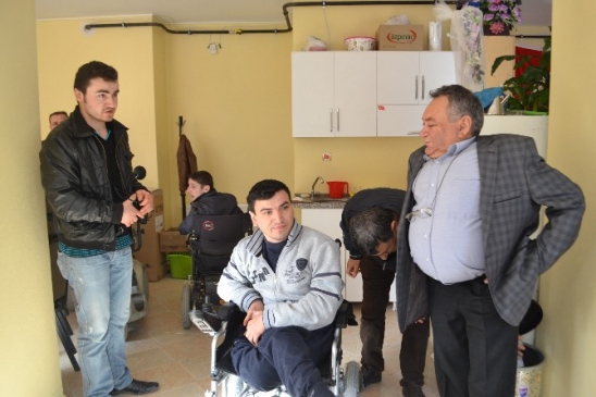 Akülü aracın tesliminin yapıldığı engelli hakkında bilgiler veren Şube Başkanı Çakan, "40 günlükken menenjit hastalığı geçirerek felç kalan 31 yaşındaki Abdullah Topuz kardeşimizi ise 3 Aralık Engelliler Gününde Kaymakamımız ile birlikte ziyarette bulunmuştuk. Kendisine de bugün çok istediği akülü tekerlekli sandalyeyi teslim edeceğiz" ifadelerini kaydetti.