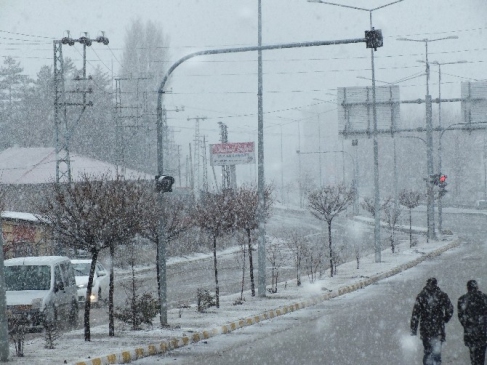 Muş’un Malazgirt ilçesinde yoğun kar yağışı etkisini göstermeye başladı.