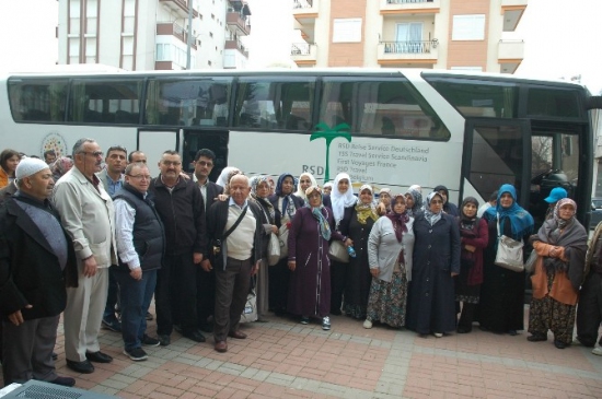 Antalya’nın Manavgat ilçesinde Umre ziyareti gerçekleştirecek olan 45 kişi Biniciler Cami önünden yakınları tarafından dualarla