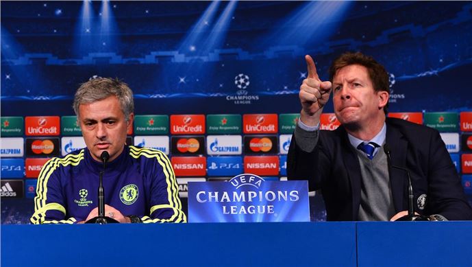 Chelsea Teknik Direktörü Jose Mourinho (sol), Şampiyonlar Ligi çeyrek finalinde Paris Saint-Germain (PSG) ile yapacakları maç öncesi düzenlenen basın toplantısına katıldı.Muhabir: Mustafa Yalçın