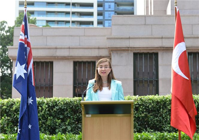 Mustafa Kemal Atatürk tarafından Çanakkale Savaşı'nda hayatını kaybeden Anzak askerlerinin cenazelerinin Avustralya ve Yeni Zelanda'ya getirilmesini isteyen asker annelerine hitaben yazdığı mektuptaki sözler, Sydney'in merkezindeki Hyde Park'ta yapılan Atatürk Anıtı'nın üzerine konuldu. Törende Sydney Başkonsolosu Şeyda Hanbay Arca (fotoğrafta) bir konuşma yaptı.Muhabir: Recep Şakar