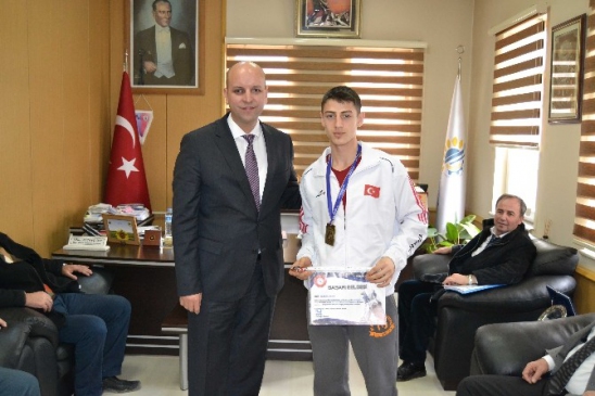 Tekirdağ’da düzenlenen 61 ilden 646 sporcunun katılımıyla Ümitler Türkiye Şampiyonası katılarak 60 kiloda birinci olan Muhammed Hamdi Yıldırım, Hayrabolu Belediye Başkanı Fehmi Altayoğlu’nu ziyaret etti. Belediye Başkanı Fehmi Altayoğlu, Muhammed Hamdi Yıldırım’ın hediyesini takdim ederek, başarısından dolayı tebrik etti ve başarılarının devamını diledi.