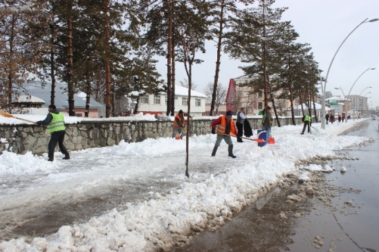 AĞRI (İHA) – Ağrı Belediyesi, iki gündür aralıksız devam eden kar yağışından sonra seferberlik başlattı.