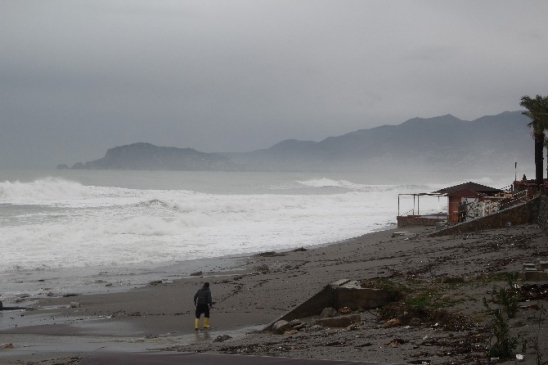 Antalya’nın Alanya ilçesinde iki gün boyunca etkili olan yağmur ve fırtınada oluşan dev dalgalar, plajdaki çok sayıda büfede maddi hasara yol açtı.