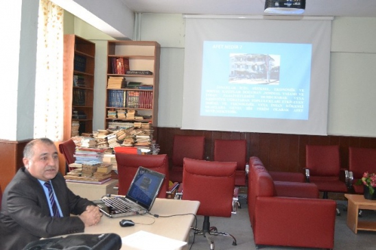 Aksu, deprem, yangın ve nükleer, biyolojik ve kimyasal savaşlardan korunma konularında sunum yaptı.